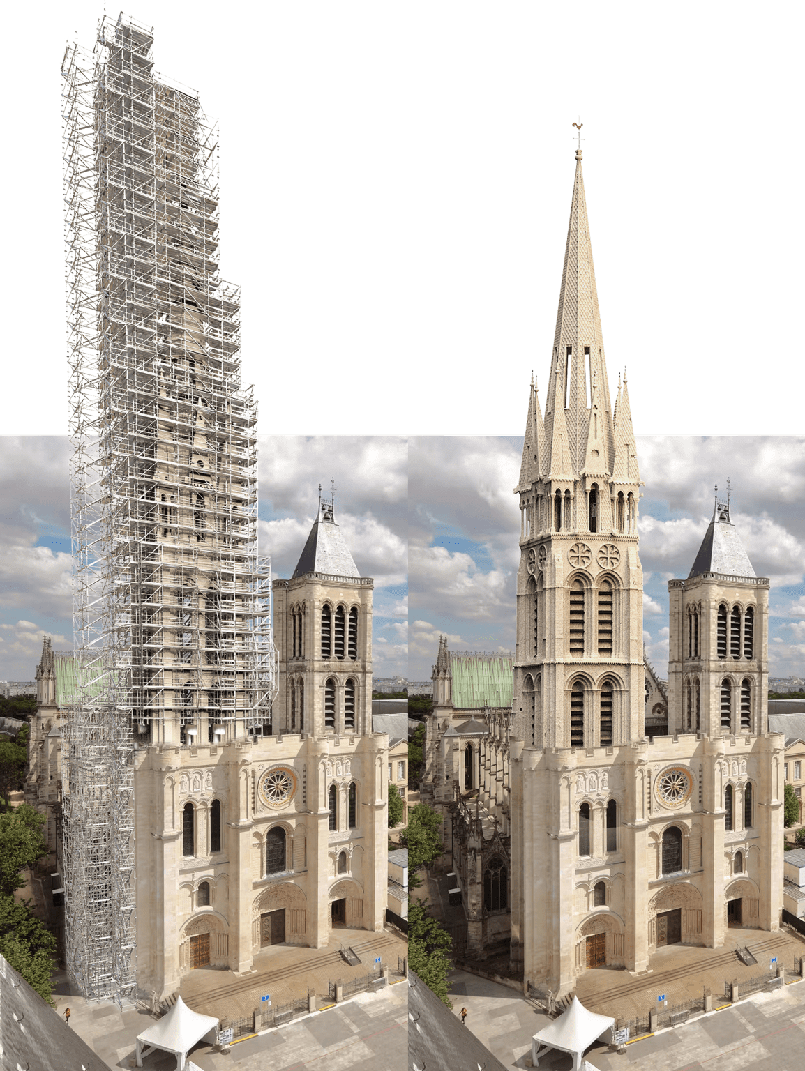 Nous avons l’honneur d’avoir été mandatés pour diriger l’équipe de maçons, tailleurs de pierre, sculpteurs, dans le cadre de la reconstruction de la flèche de la Basilique de Saint-Denis.